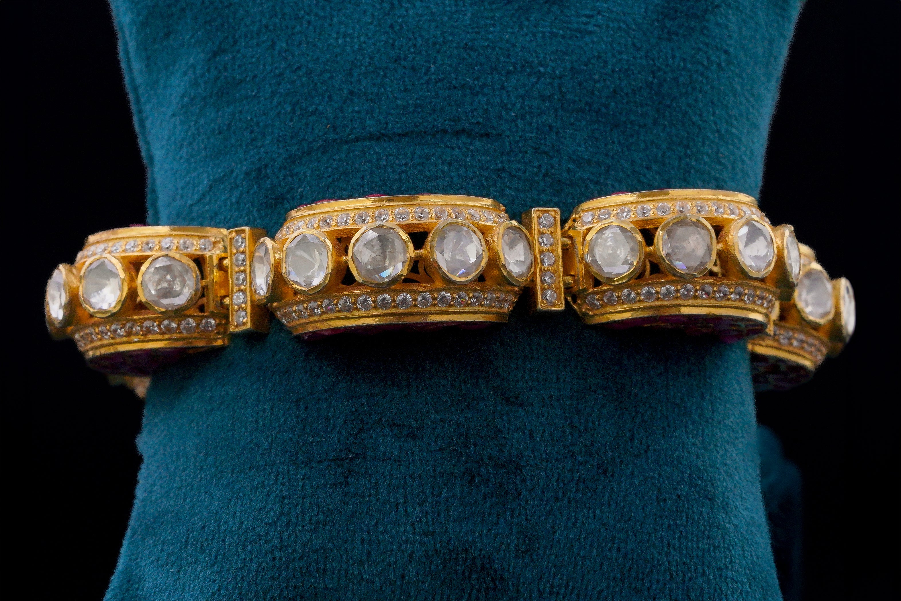 The high-quality silver ensures durability and longevity, while the traditional kundan setting adds a touch of traditional charm. Whether worn alone or paired with other silver jewelry, this bracelet is versatile and can easily elevate any outfit. Make a bold fashion statement with this beautiful silver kundan bracelet that is sure to turn heads wherever you go.