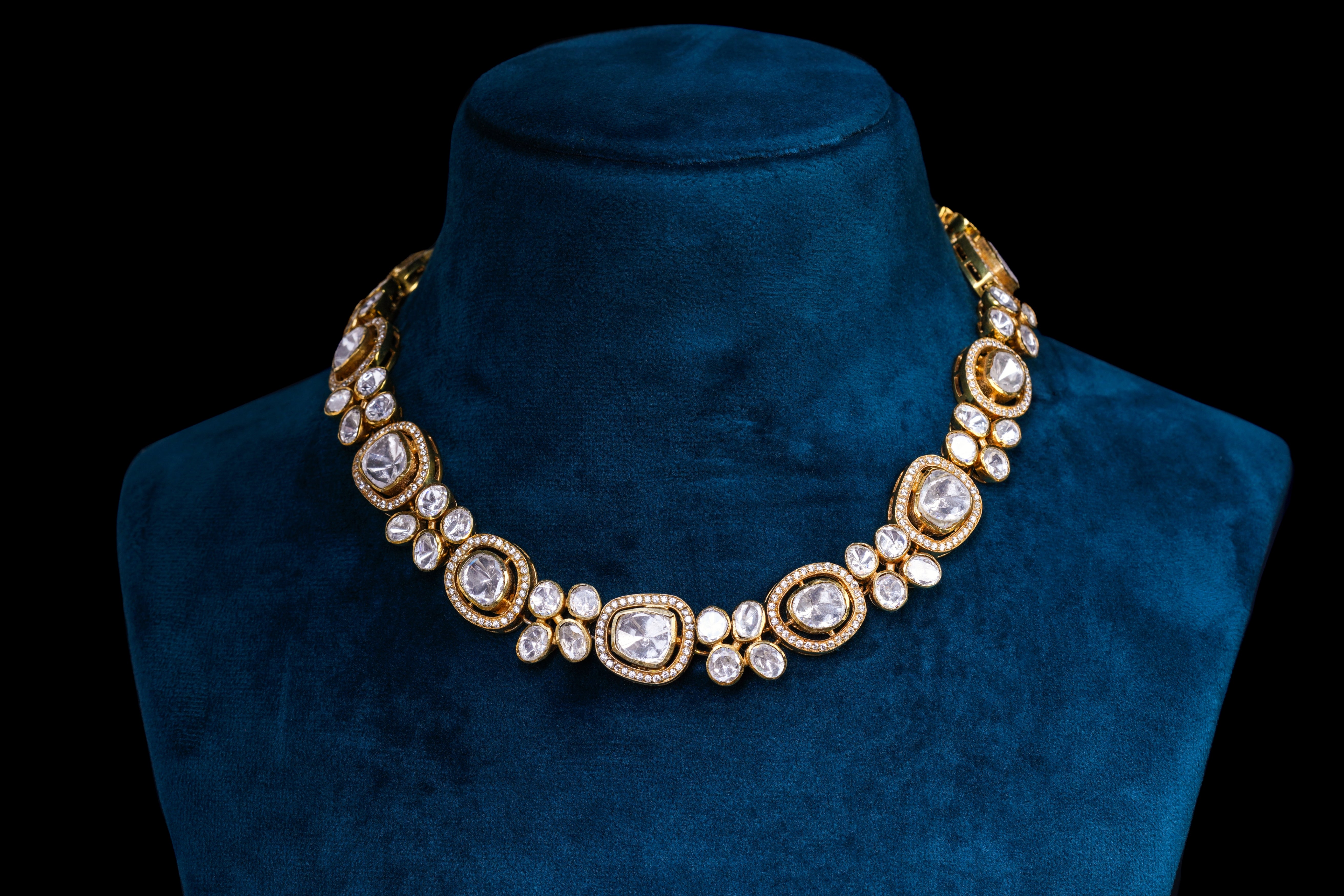 Bask in the warmth of golden elegance with the Golden Hour Polki Necklace. Crafted in sterling silver and adorned with glistening polki stones, this piece exudes luxury and charm. Perfect for any special occasion, it captures the essence of timeless sophistication and ensures you shine effortlessly through every celebration.