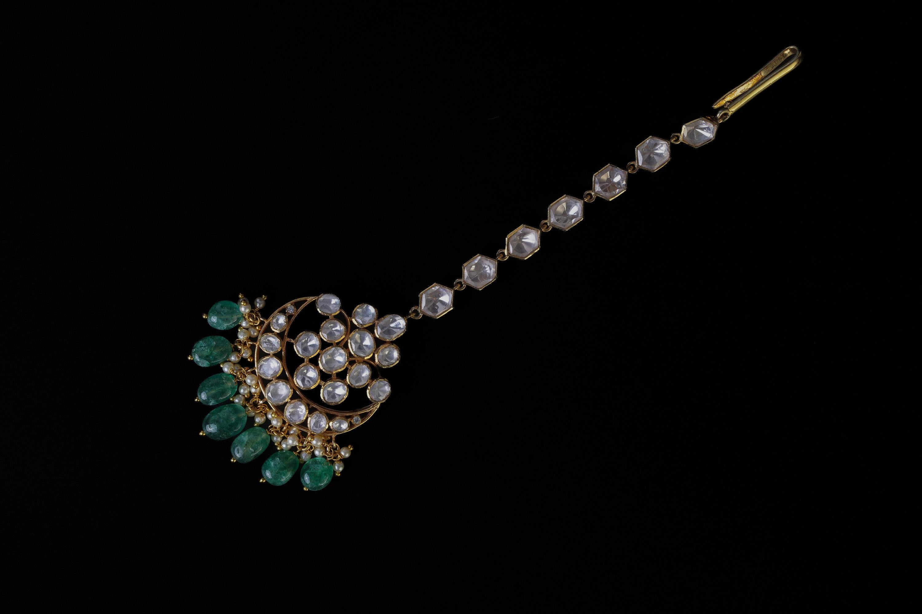 Elevate your elegance with our Green Designer Mangtika from Khaitan Jewels. This exquisite mangtika features a captivating green design, exuding charm and sophistication. Crafted with precision and attention to detail, each piece is a testament to fine craftsmanship. With a weight of 19 grams, this mangtika offers both style and comfort. Make a statement and experience the timeless beauty of Khaitan Jewels with this stunning piece.