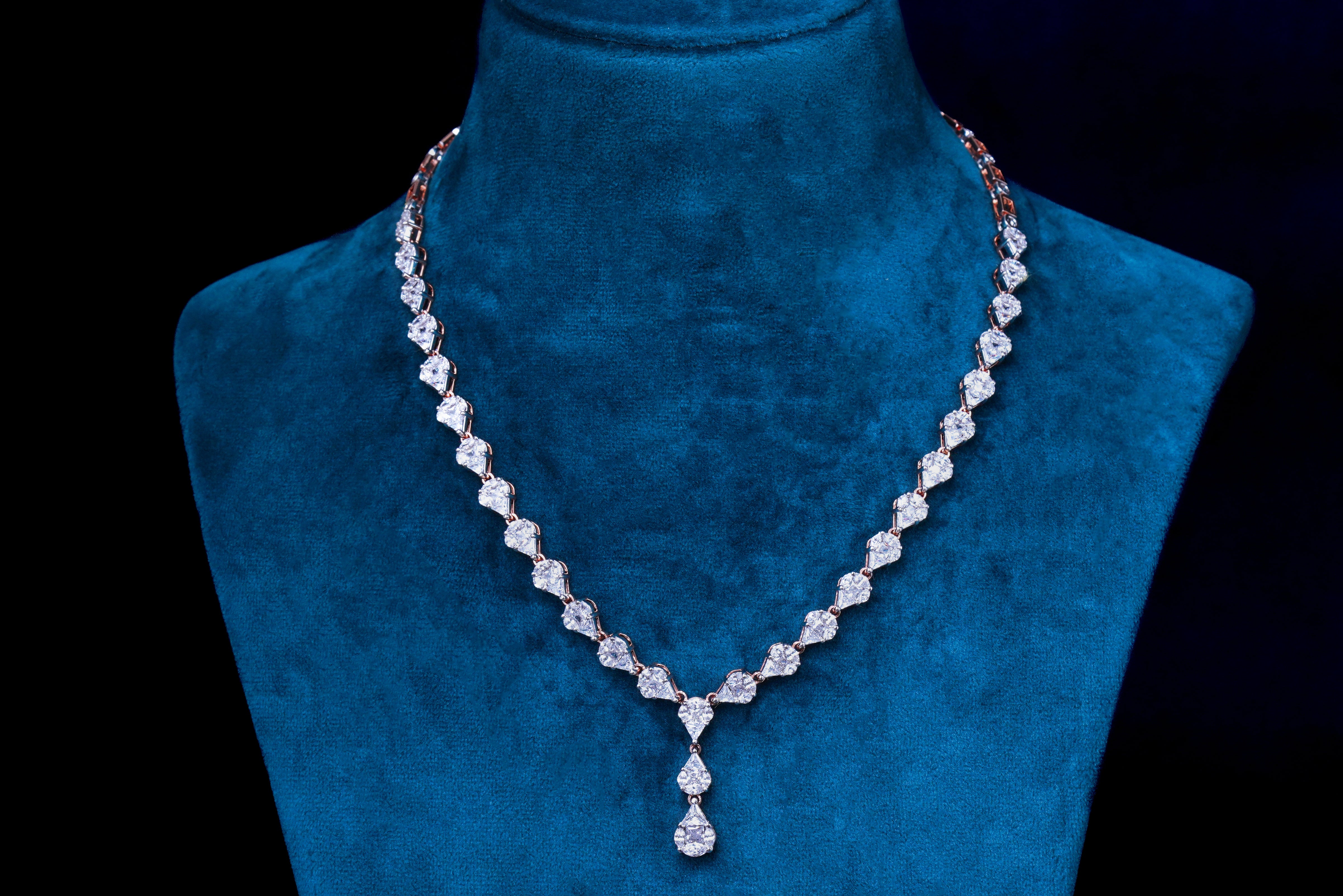Expertly crafted with silver material and adorned with American diamonds, this product exudes elegance and sophistication. The high-quality materials not only lend a luxurious look, but also guarantee long-lasting beauty for years to come. Elevate any outfit with this stunning piece.