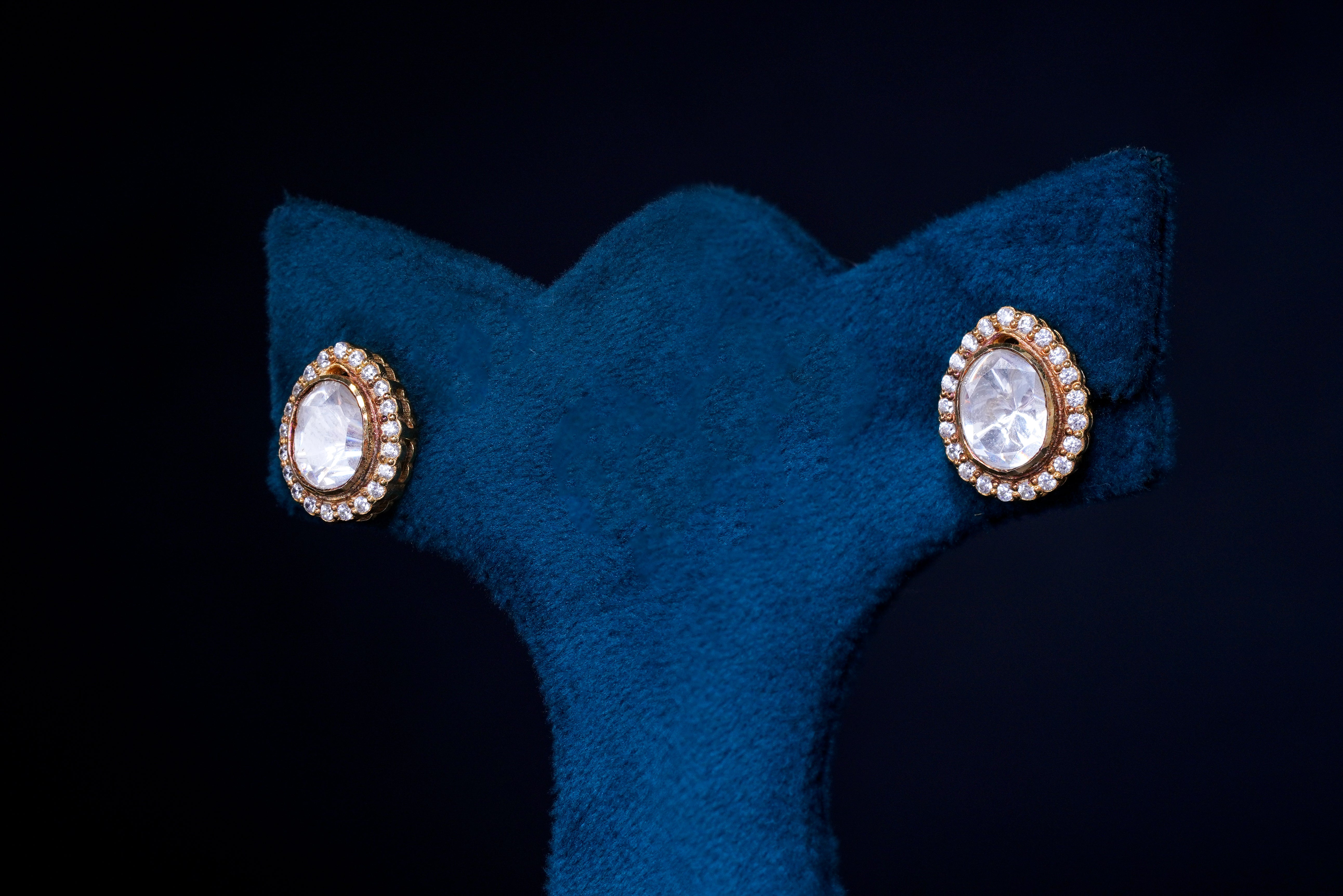 Experience timeless beauty with these oval-shaped Polki stone stud earrings, meticulously crafted in pure silver. The central Polki stone, encircled by a delicate pave halo, radiates a blend of traditional charm and modern sophistication. Lightweight and versatile, these earrings are perfect for elevating your style for any occasion—whether it's a casual outing or a festive celebration.