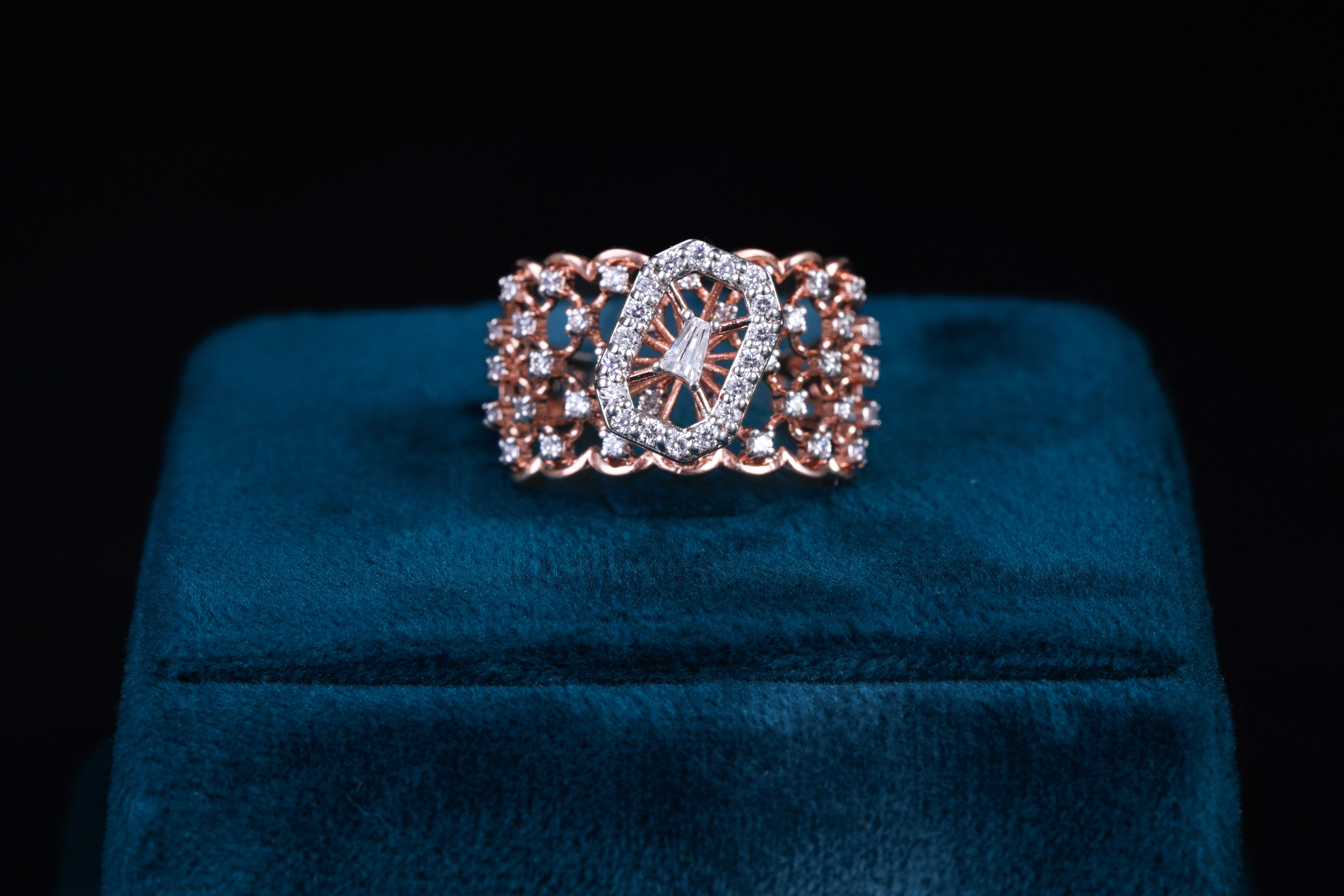The Royal Whisper Ring is a masterpiece that speaks volumes with its subtlety and finesse. The central gemstone, typically a brilliant diamond or colored gemstone, is set in a meticulously crafted band, surrounded by smaller diamonds or delicate accents that enhance its radiance. This ring offers a subtle yet powerful expression of luxury,