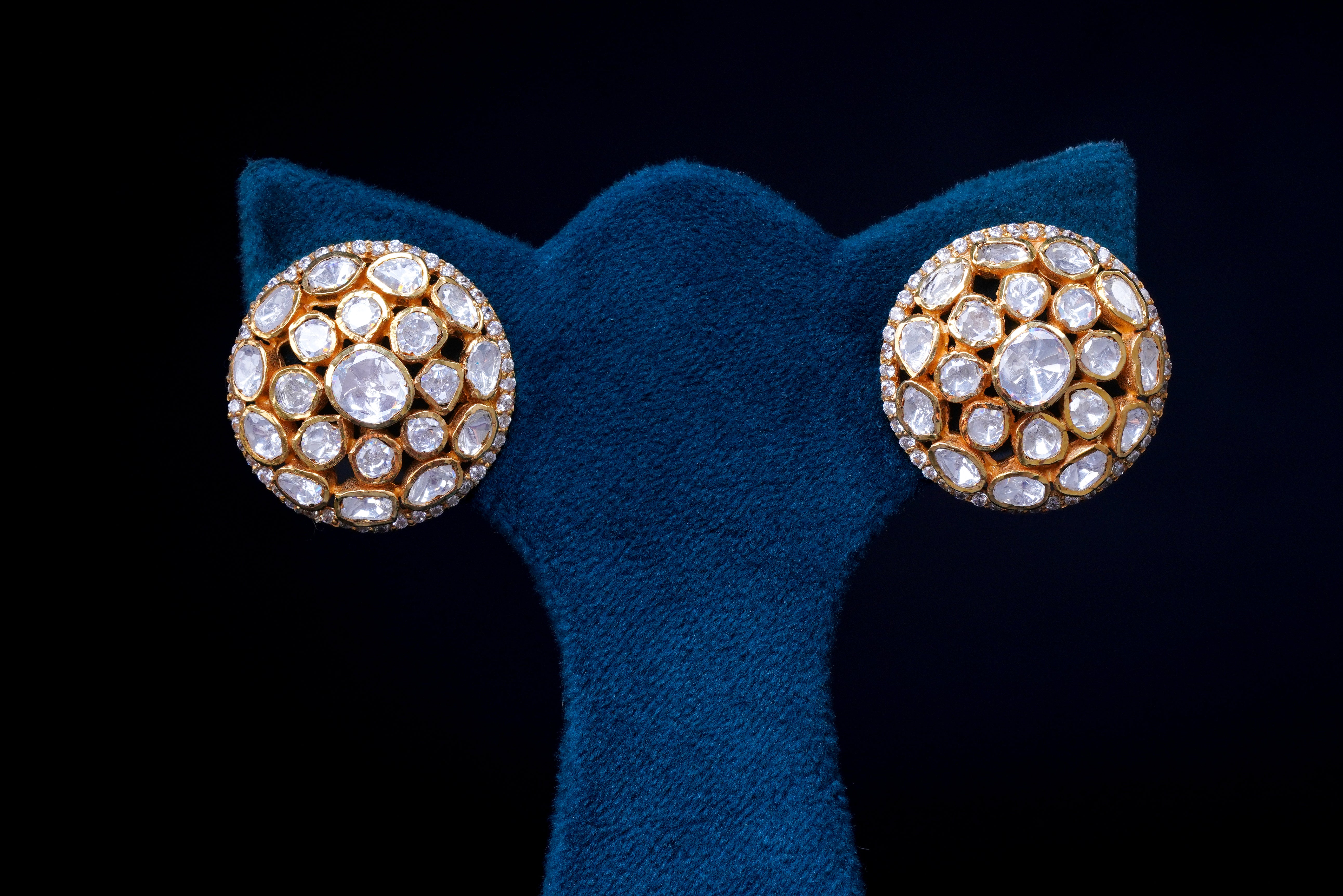 Add a pop of color to your collection with these round Polki silver earrings, surrounded by a ruby-hued border for a luxurious look. The central Polki stone radiates subtle charm, while the ruby accents add a vibrant and regal flair. Perfect for weddings, celebrations, or elevating your everyday style, these earrings are a must-have accessory.