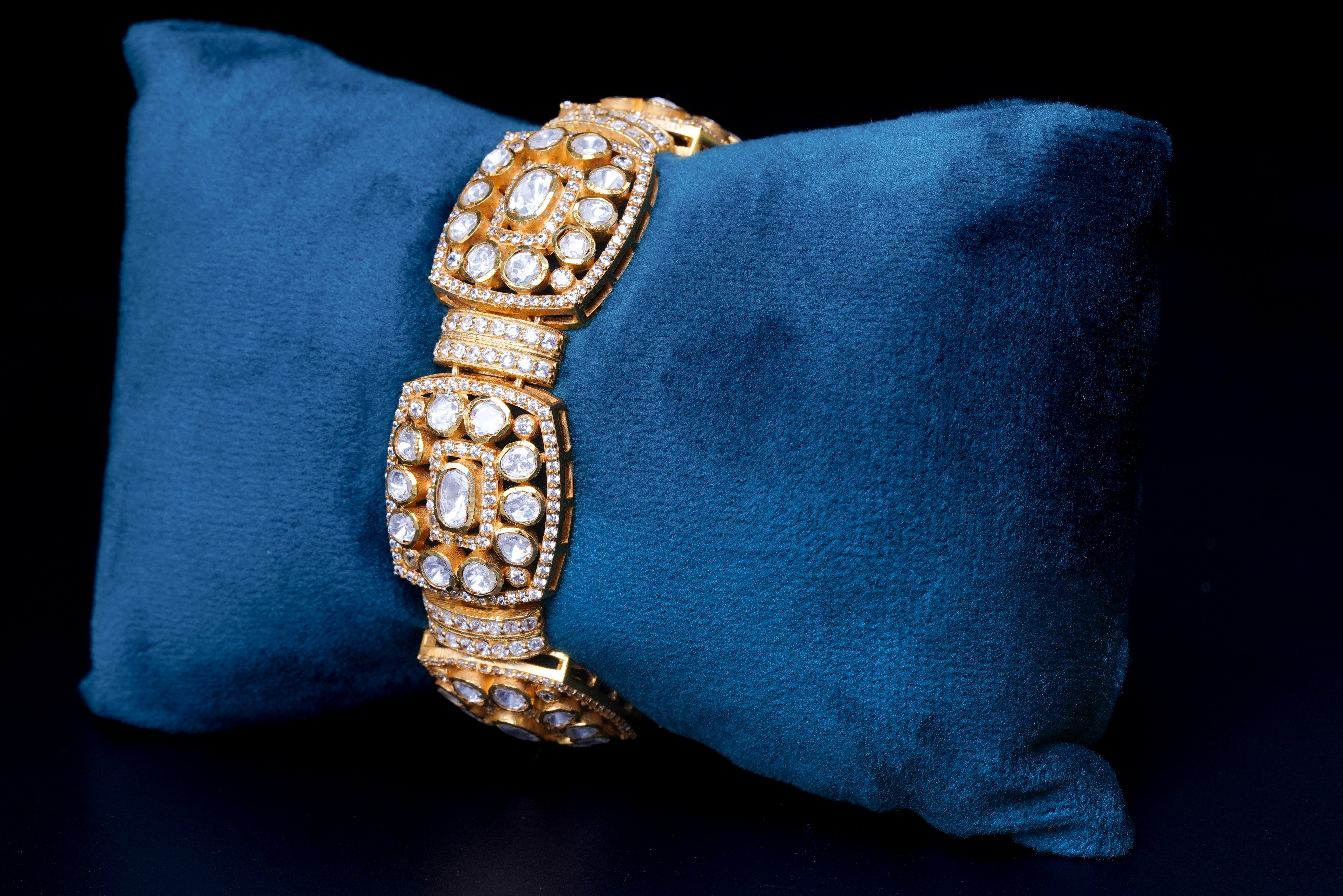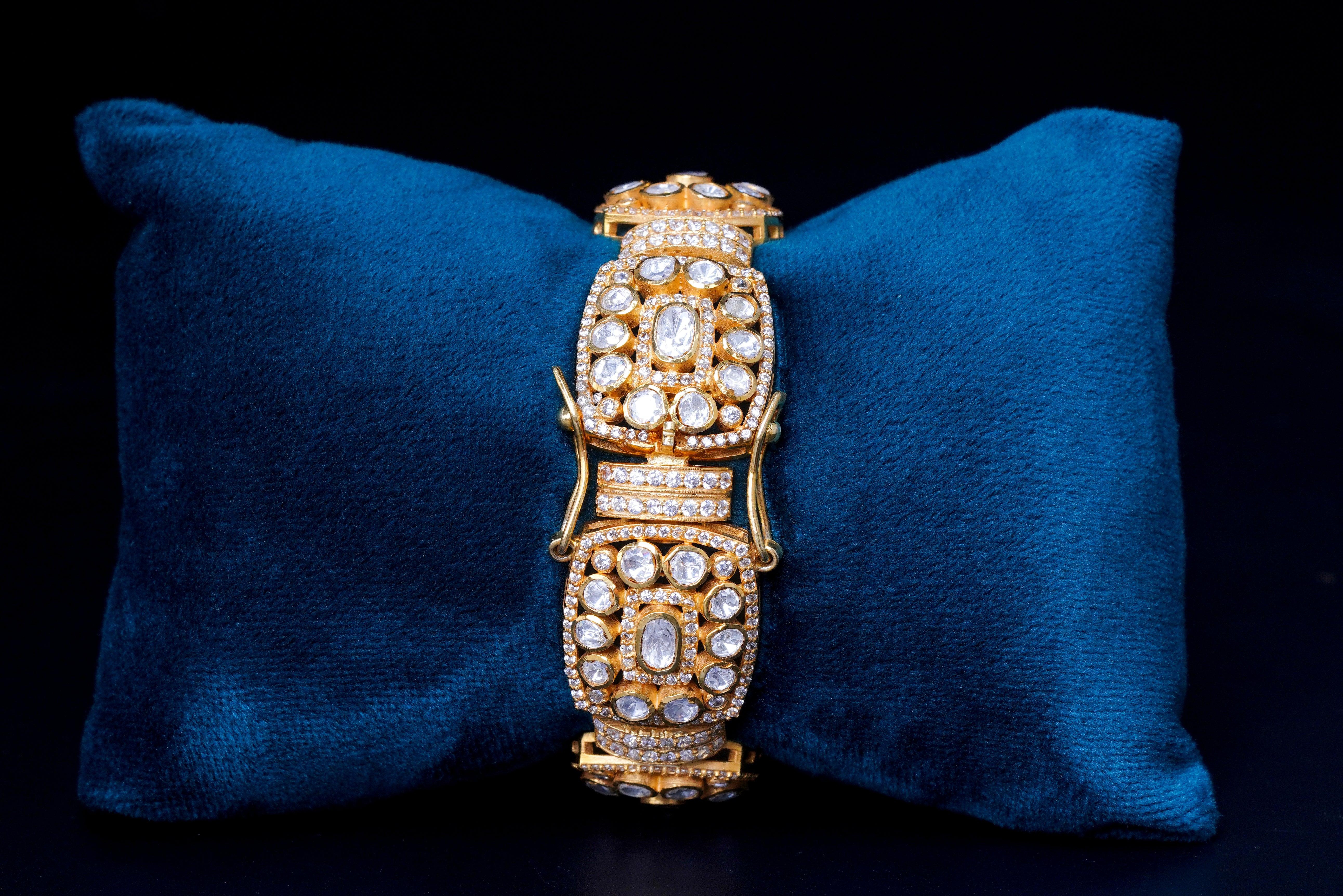 The bracelet’s clean, elegant design makes it versatile enough for both everyday wear and special occasions, offering a luxurious, yet understated look. The cool silver setting perfectly complements the brilliant shine of the Polki, making this bracelet a stunning statement piece that exudes timeless beauty and sophistication. Whether worn solo or stacked with other pieces, the Sunlit Polki Silver Bracelet is sure to become a cherished addition to your jewelry collection.