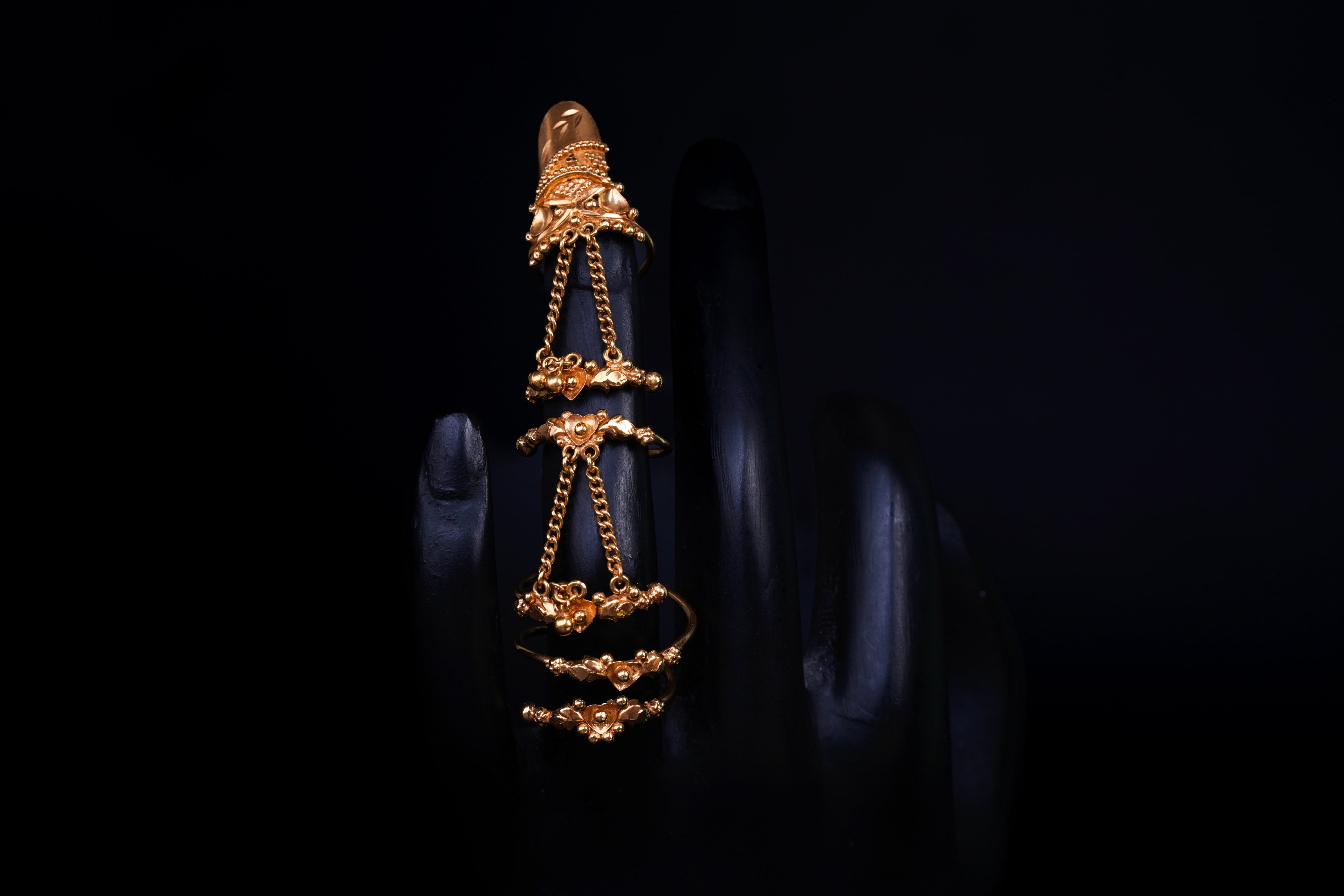 This ring features a finger-length design with a nail attached. Perfect for individuals who want to make a bold statement or stand out from the crowd. Made from high-quality materials, this ring is durable and long-lasting.