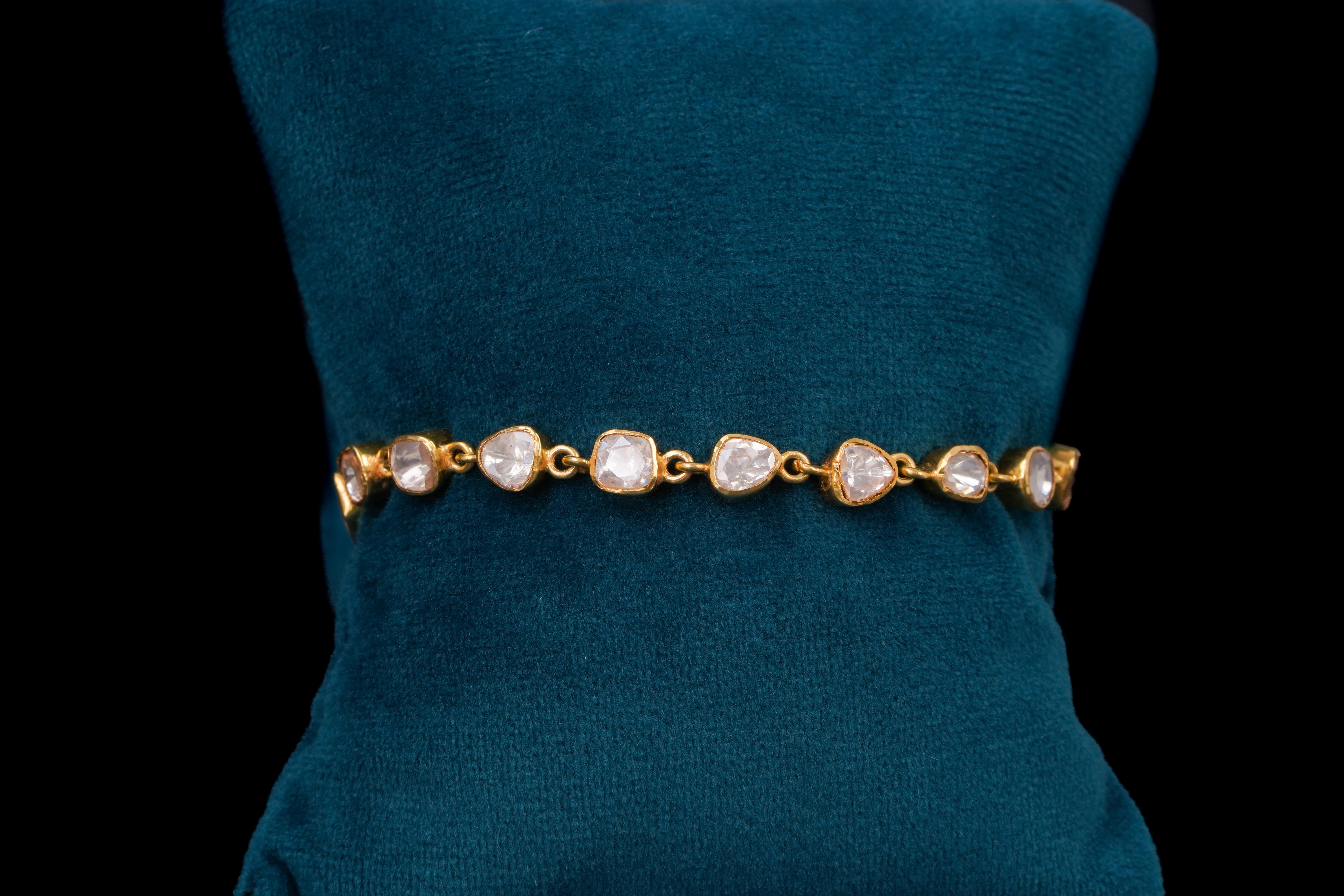 This exquisite polki bracelet features a stunning gold-plated clasp, elegantly combining vibrant color with luxurious detailing. The addition of silver polki elements enhances its charm, making it a perfect accessory for both casual and formal occasions. Its unique design ensures that it stands out, while the quality craftsmanship guarantees durability and style.